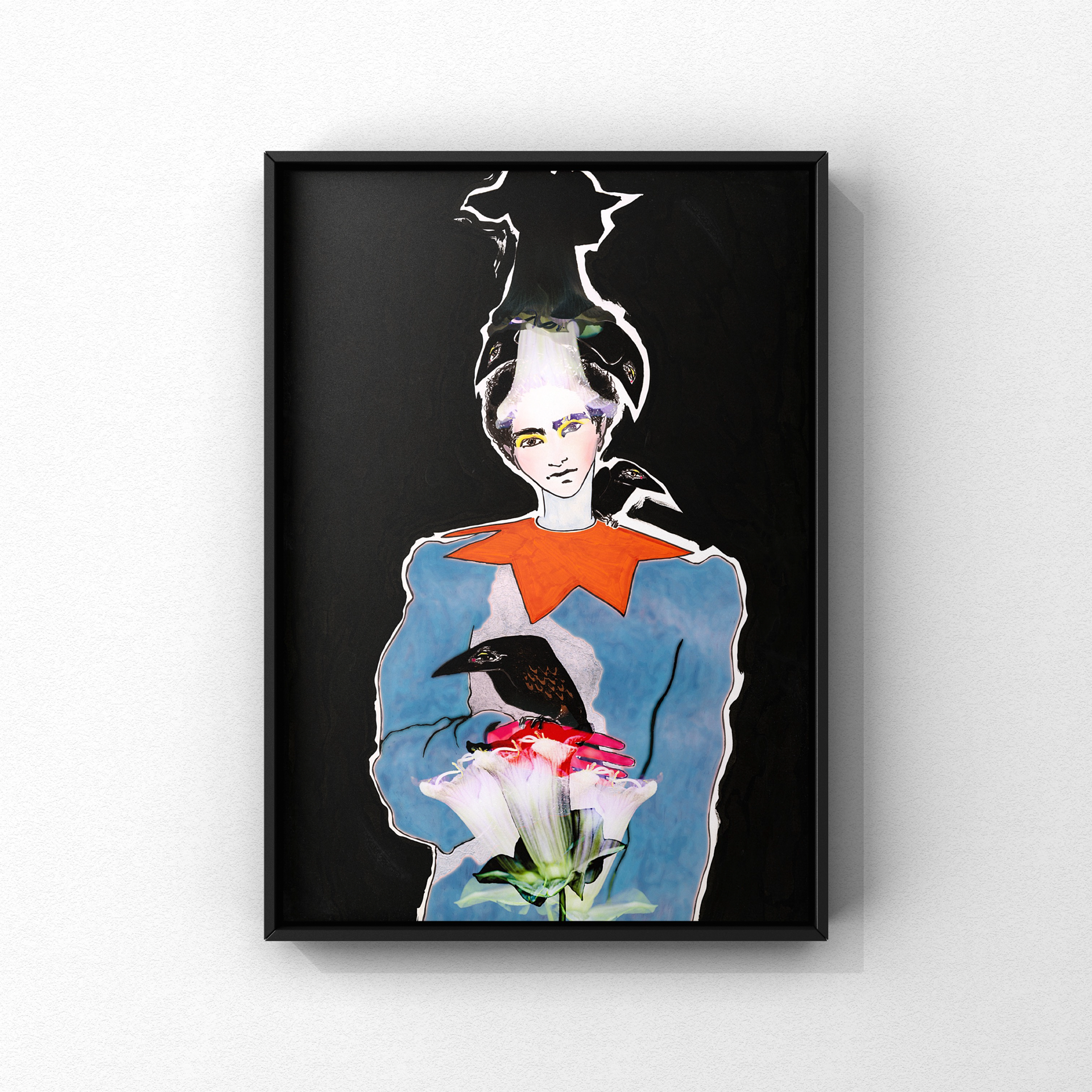 The print is unframed. If you wish to have the work framed, please contact me for custom framing.